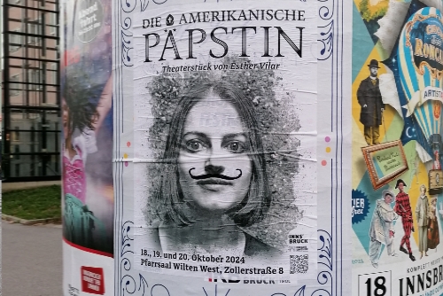 Tourneetheater Innsbruck„Die amerikanische Päpstin“Die päpstlichen Plakatierer müssen die überklebten Plakate mehrfach erneuern. 14.10.2024 Tourneetheater Innsbruck